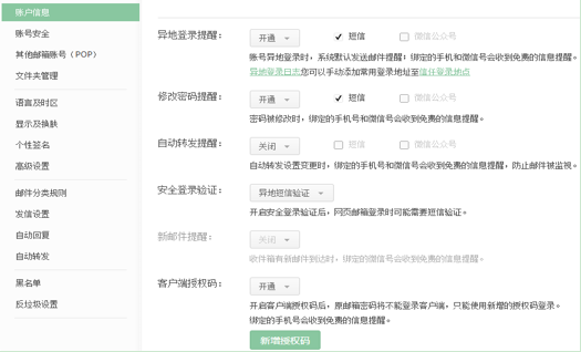 系统默认开启异地登录提醒,在绑定手机后,建议开通异地登录短信验证以及客户端授权码。