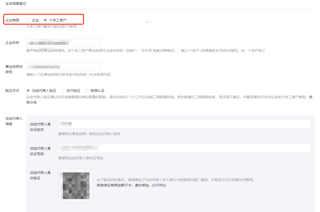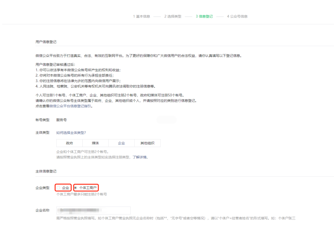 主体类型、企业类型(【企业】/【个体工商户】)均根据贵司工商资质选择