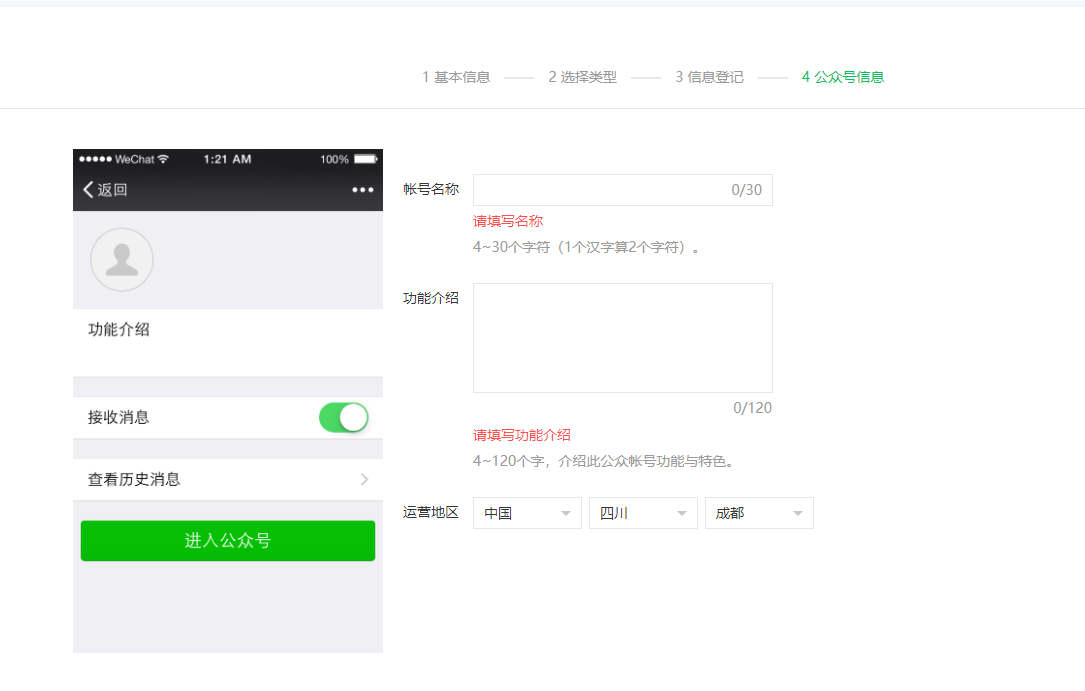 6. 填写公众号基本信息