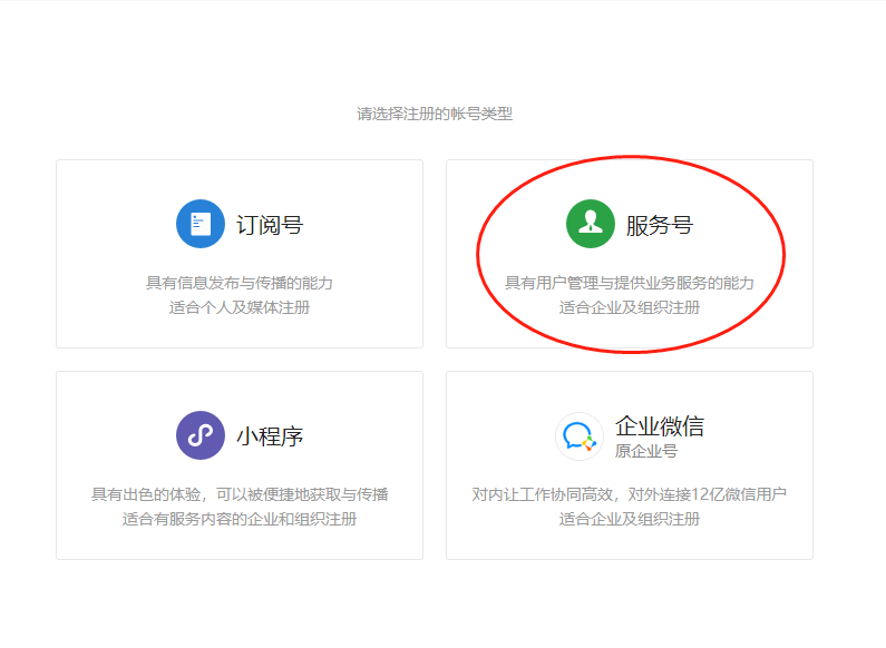 2. 选择【服务号】