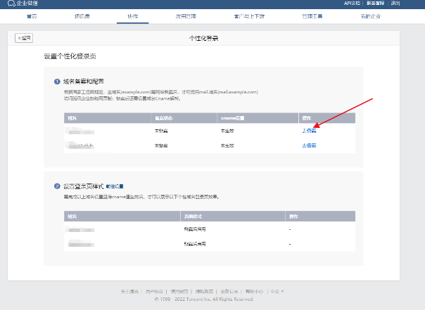 完成CNAME记录设置并且生效后, 就可以使用自定义登录页功能去设置个性化登录页了: