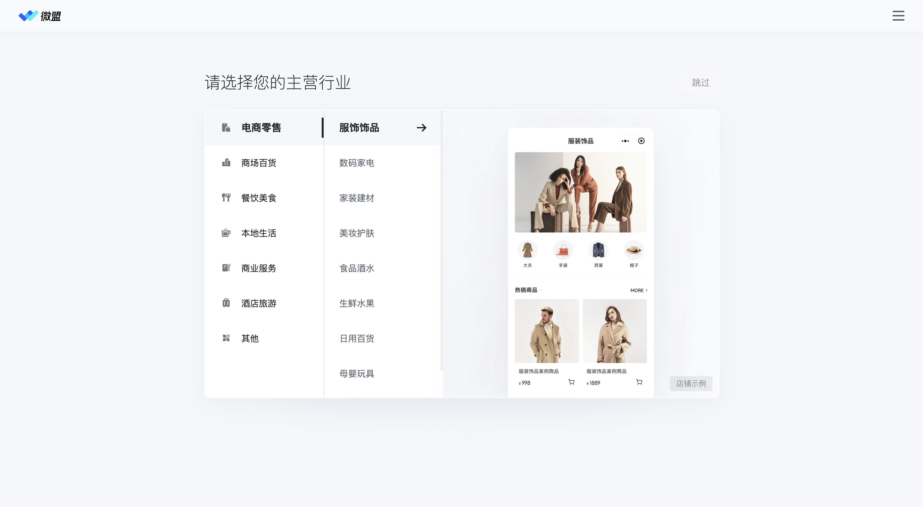 对于新注册的商户,注册完成后会进入选择主营行业页面,商户可根据自己实际的经营情况进行选择。