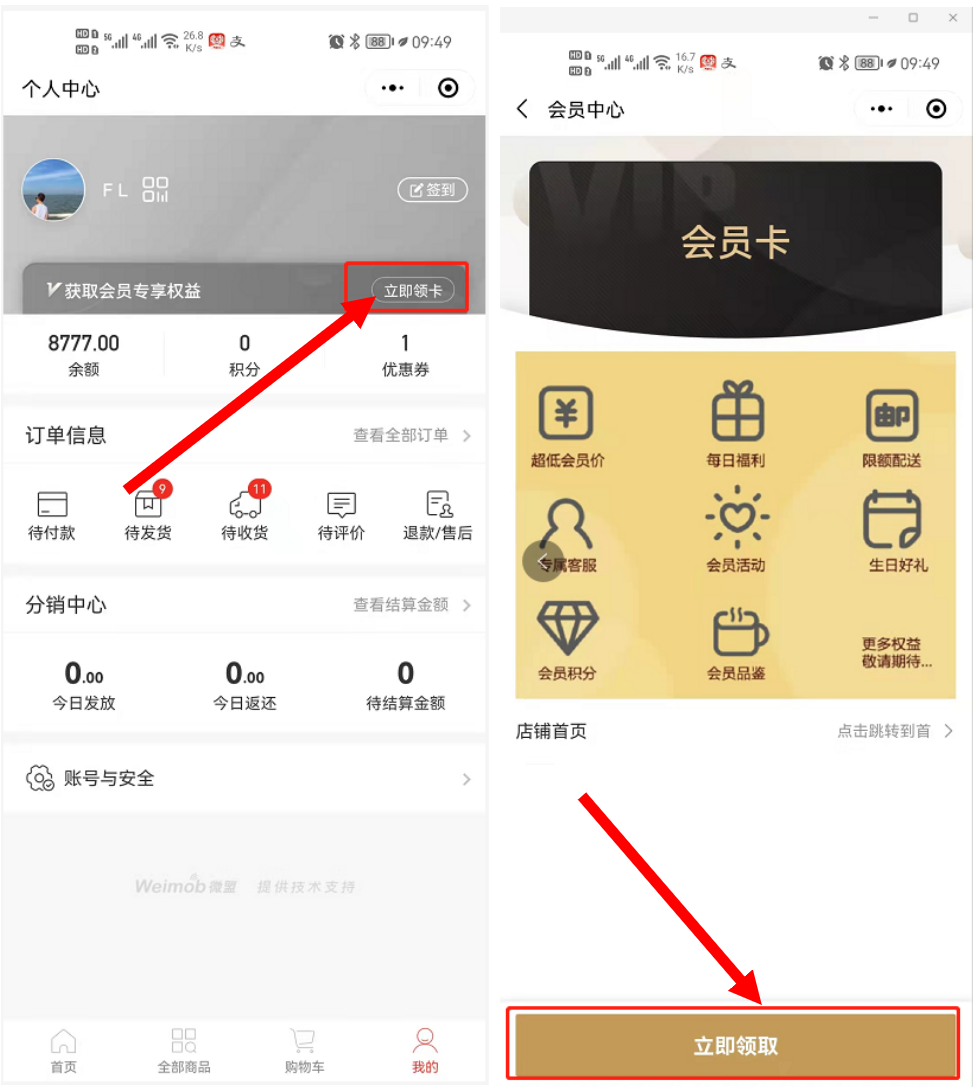 首页 / 微盟商超会员注册更新时间:2022-09-20 16:34阅前须知:目前共有三种方式可以成为会员分别为:收银机注册成为会员、通过小程序注册成为会员、在后台选择用户发卡,将用户设置为会员。一、收银机注册步骤1:收银界面点击”功能菜单“ → 会员注册步骤2:注册会员需要填写会员手机号和会员姓名,如果有实体卡,也可以填入卡号进行绑定。也可以录入会员支付密码,后续使用储值支付、挂失会员卡时需要录入密码校验身份。二、小程序注册步骤1:进入微信小程序 → 点击我的 → 点击”立即领卡”三、后台指定用户发卡步骤:品牌(总部后台) → CRM → 客户管理 → 客户列表 → 勾选对应的客户,更多里面,选择“开通会员”,选择对应的会员卡即可